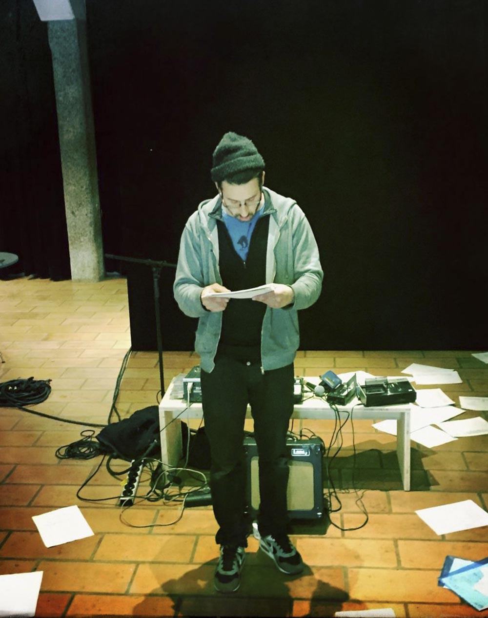 Performance-scansion à travers objets et formes diverses, sans (em)prise électrique. Études préliminaires non-abouties sur le corps, le son et leurs imbrications multiples. Vouloir (sup)porter la voix, sans artefacts et sans béquilles, plus loin plus fort partout ailleurs.