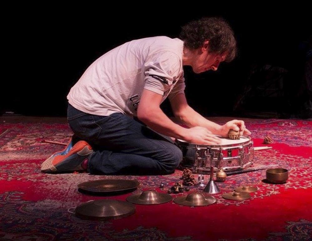 Fascinant détournement par trituration d’un instrument dont on aurait tort de croire qu’il ne se joue qu’en rang et en uniforme, le jeu de caisse claire acoustique de Rodolphe Loubatière explore le spectre sonore dans ses grandes largeurs, naviguant avec virtuosité des plus violentes stridences aux granulosités les plus finement texturées.